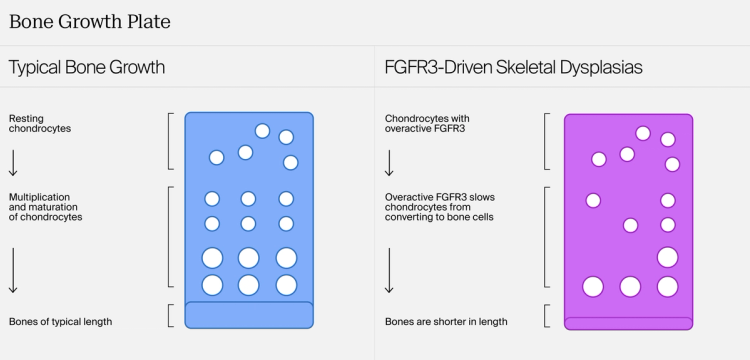 Hypochondroplasia is a type of skeletal dysplasia that causes bone growth to slow down, especially in the long bones of the arms and legs, which results in disproportionate short stature and shortened limbs.